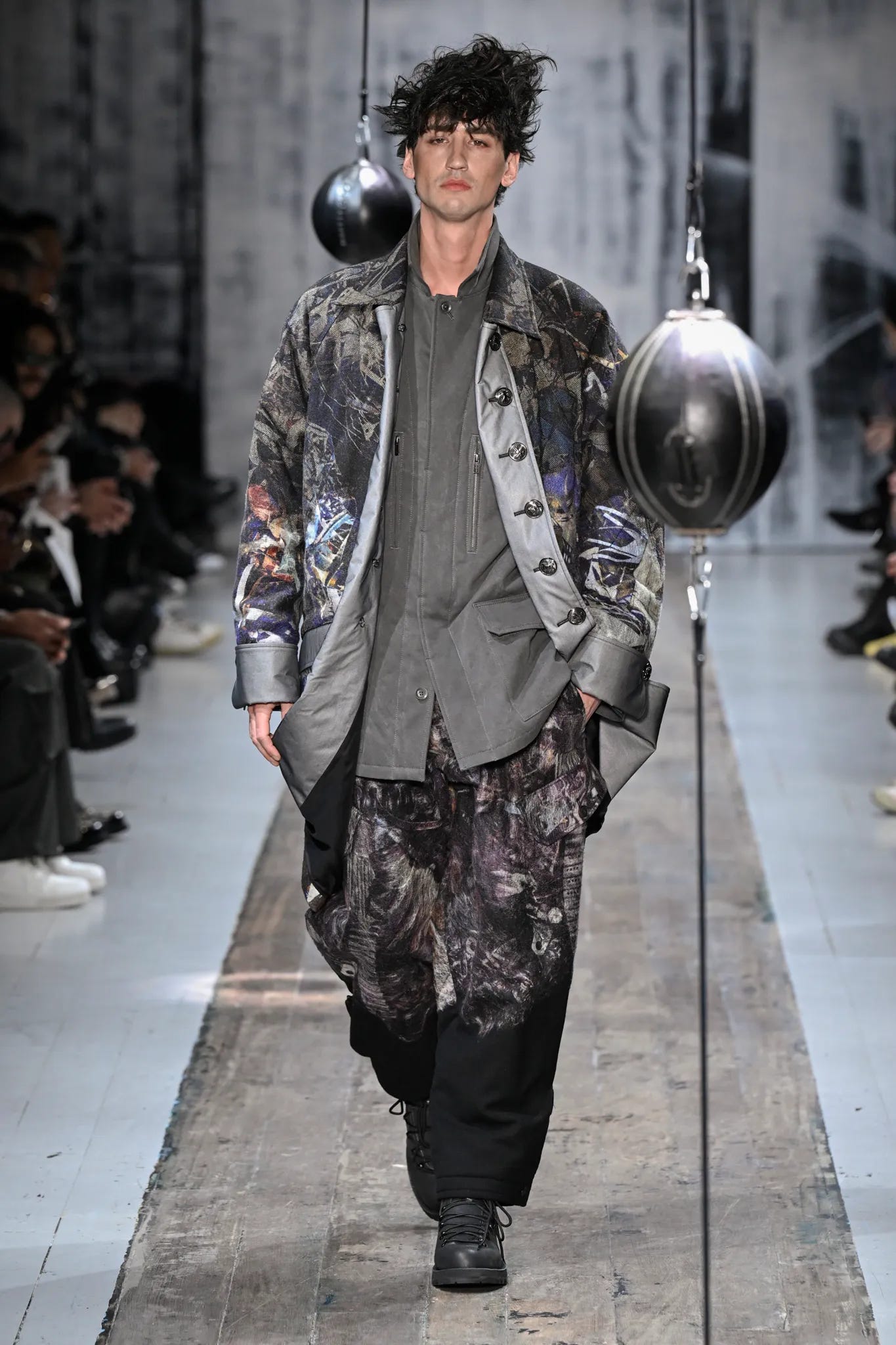 Though nuanced, the sub-themes of emotion displayed by Yamamoto aren’t unfamiliar to boxers who train. This runway made me reminisce about late nights home after taking out the day in training. Putting leather-to-leather to escape or to attack my emotions head-on. The look and atmosphere of the runway brought me to the feeling of catharsis, leaving my body after training while waiting for the late bus on a stormy night in Dublin. For boxers or for people who just hit bags, it’s good to get the feelings out of a bag.